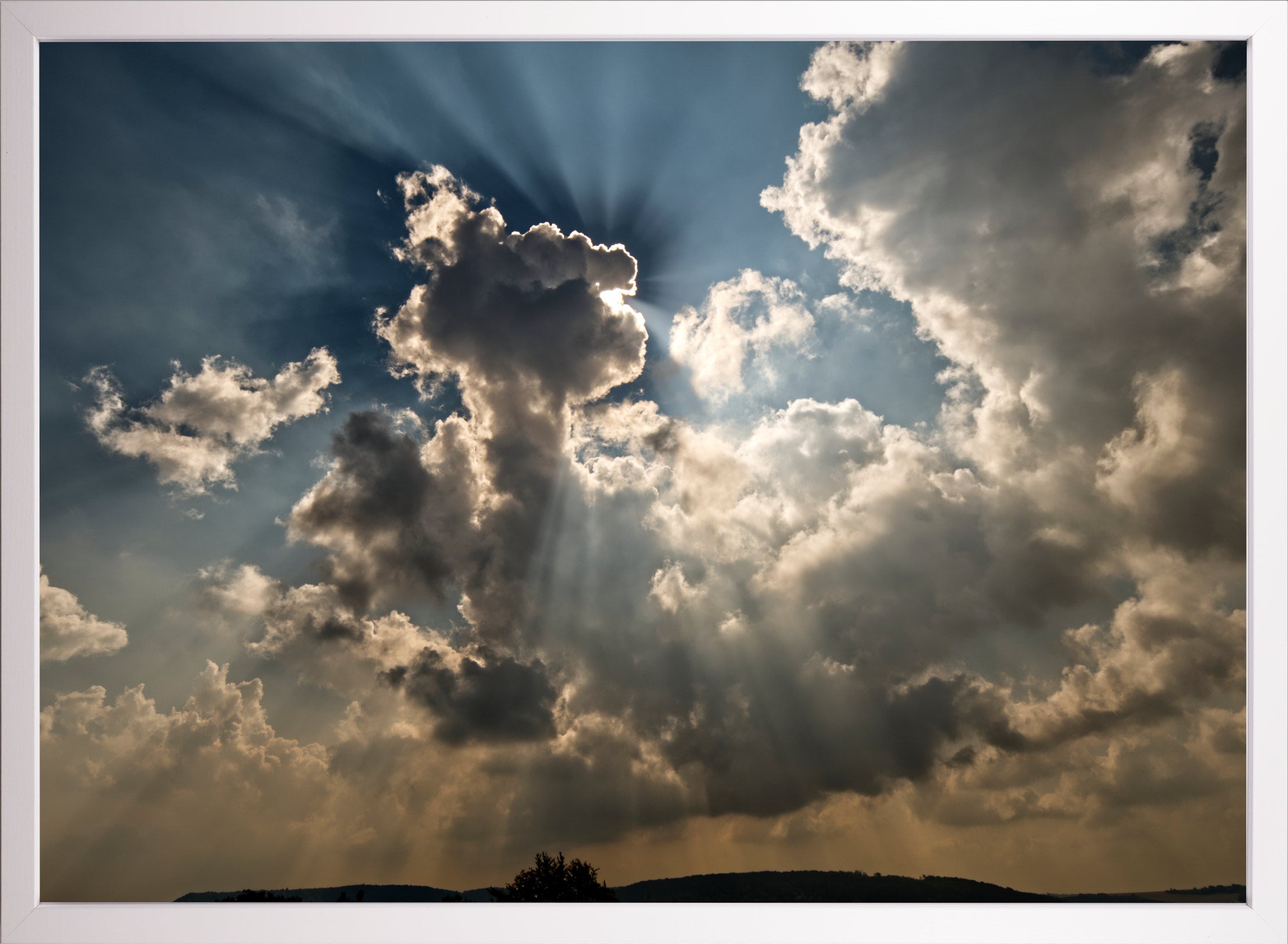 Nicht immer schauen wir in den Himmel und sehen ein Schauspiel zwischen Sonne und Wolken von diesem Ausmaße. Ein Glück, dass ich es für dich festgehalten habe, damit es in deinem Heim ewig scheinen kann.